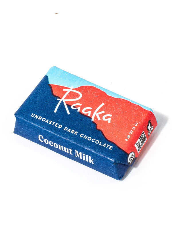 Incredibly smooth and creamy mini milk chocolate bars made from coconut milk, with simple ingredients and ethically sourced beans. Raaka uses high-quality cacao that supports community and sustainability in countries like Tanzania and the Dominican Republic.