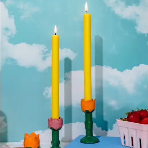 Your dinner parties are about to get seriously cuter. This pair of 2 candle holders showcases two distinct ceramic flowers at varying heights.