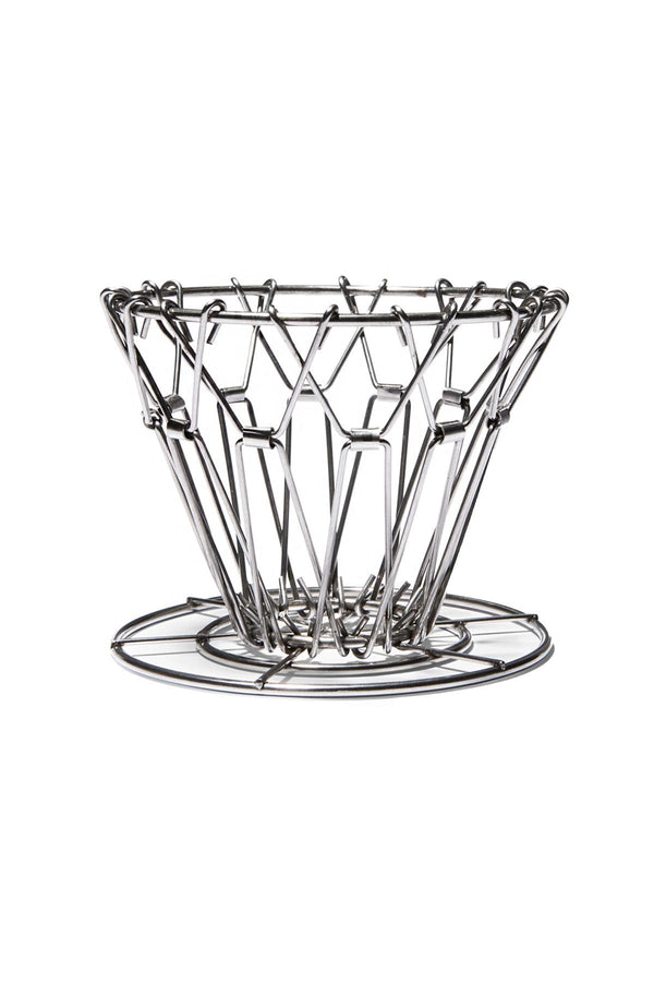 A simple, no fuss pour over basket that is easy to fold, easy to store, fits any filter size and pairs well with any kitchen decor. Also easy to clean and perfect for traveling on-the-go.