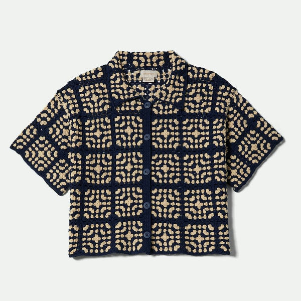Keep it breezy and ultra-stylish this summer with the Crochet Short Sleeve Button Down. This lightweight, breathable cotton crochet top is truly handcrafted, featuring an intricate indigo and off-white pattern for a vintage-inspired look that stands out.