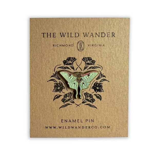 From bags to jackets to hats, The Wild Wander's hand-drawn moth enamel pin is a stunning addition to your collection.