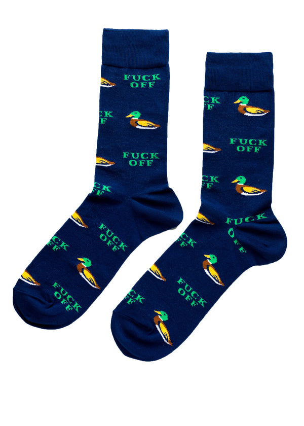 Classic crew socks made from soft and durable cotton, with a duck off print for those days.