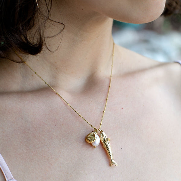 Pesce Freshwater Pearl Necklace- 18K Gold Plated