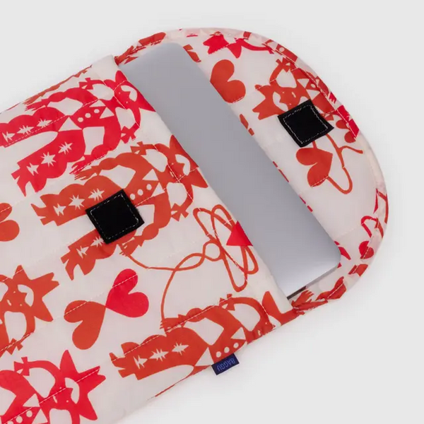 Your laptop does so much for you. Doesn’t it deserve a comfy cozy place to live? Baggu's puffy laptop sleeve is quilted and stuffed to provide your 16" laptop or tablet with just enough padding for comfortable rides.