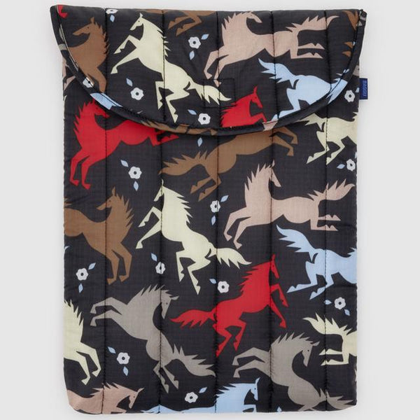 Your laptop does so much for you. Doesn’t it deserve a comfy cozy place to live? Baggu's puffy laptop sleeve is quilted and stuffed to provide your 16" laptop or tablet with just enough padding for comfortable rides.