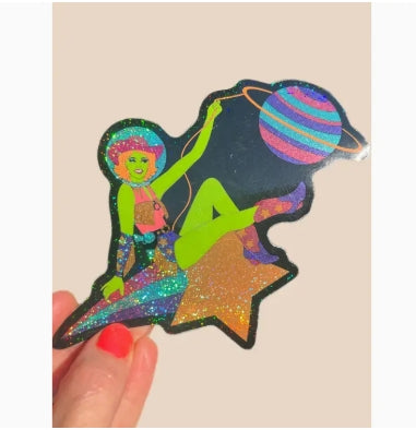 Our Space Cowgirl Rubber Magnet is crafted from premium thick, glossy, waterproof vinyl, just like all our stickers. Designed to endure years on water bottles or cars, these magnets are made by a small, expert manufacturer in Portland, Oregon—who also happen to be fantastic folks! Featuring a fun cowgirl space alien design, it’s a playful way to brighten up your gear.