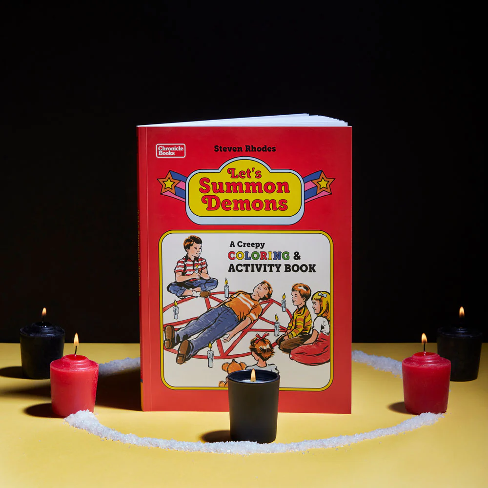Coloring is spooky, demon-summoning fun in this interactive book from artist Steven Rhodes. Apply your dark artistic talents to these retro 1970s- and 1980s-inspired, wickedly funny pop horror and sci fi pages. . . IF YOU DARE.