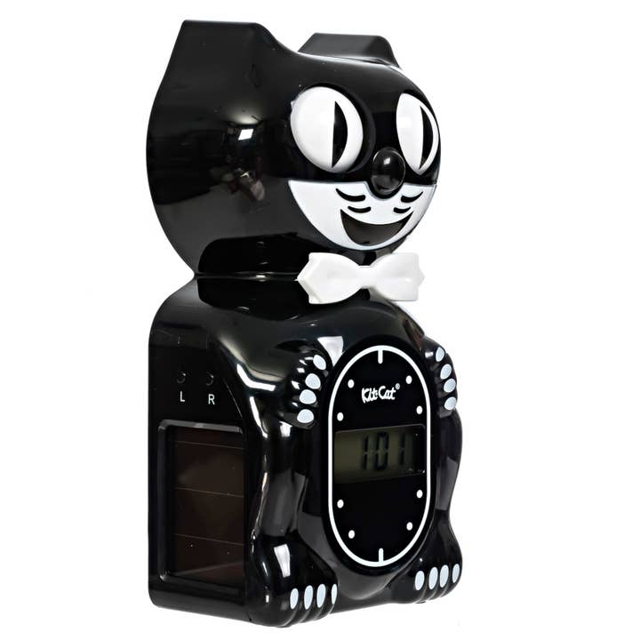 • Beyond their solar-powered charm, these mini Kit-Cats feature a battery-operated digital clock with alarm functions. Now you can enjoy the timeless style of Kit-Cat while keeping track of time with precision.