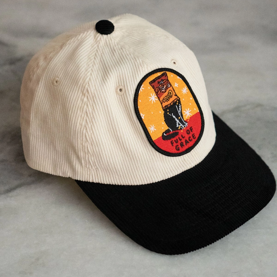 This is a six panel, unstructured, low-profile baseball cap aka dad hat in two tones of ice-cream-inspired off-white and liquorice black. A gorgeous, high quality, embroidered patch has been securely sewn onto the hat in-house. Fully adjustable using a metal sliding buckle at the back. Unisex fit, adjustable from hat sizes 6 5/8 to 7 3/8.