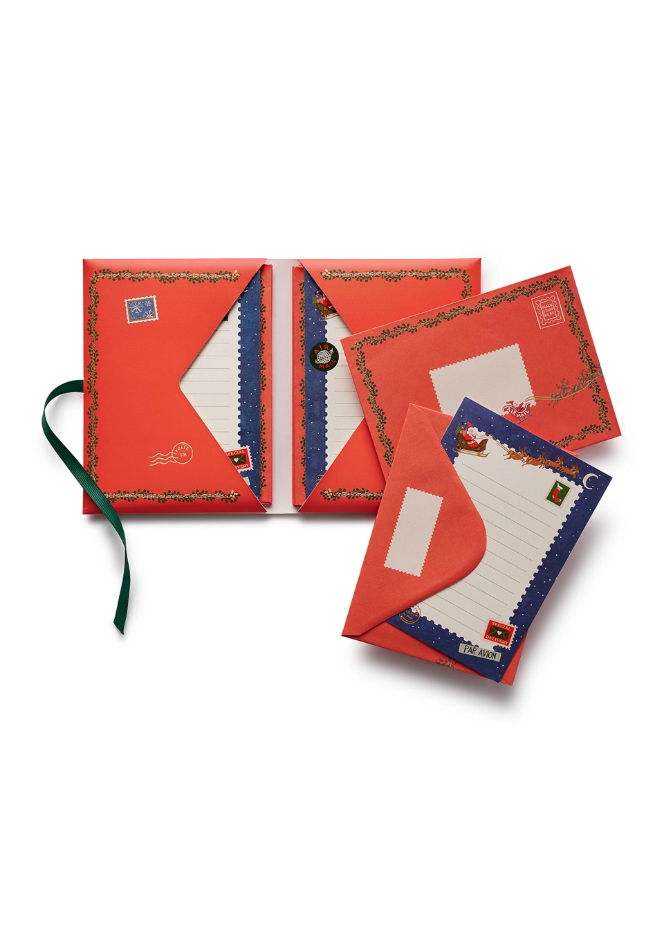 North Pole bound! Pen letters to Santa with this set of 12 illustrated notecards, including matching envelopes tucked inside a folio-style folder that closes with a ribbon.