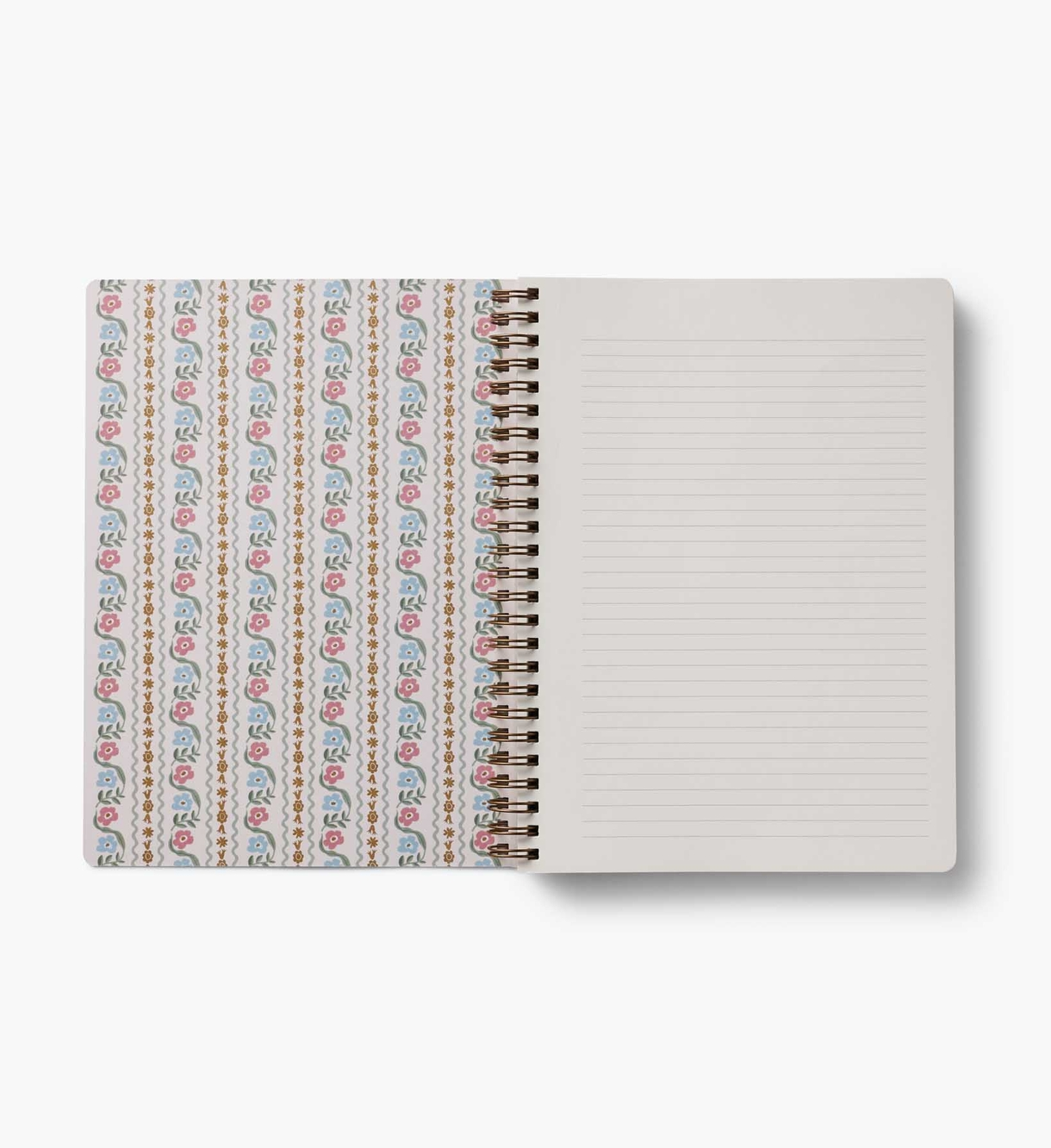 Printed on heavy-weight textured paper, this softcover spiral notebook features an illustrated cover with gold foil accents. The notebook has 150 ruled, perforated pages, a sturdy double-spiral binding, and pockets for extra storage.