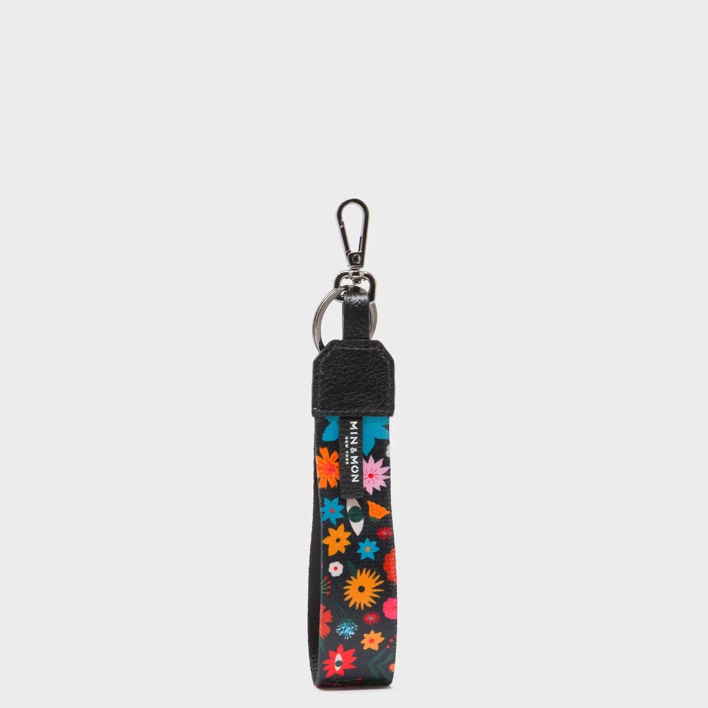 Black keychain crafted from genuine leather and nylon, featuring quirky floral details. A fun, lightweight accessory perfect for keys or bags—ideal gift for flower lovers.