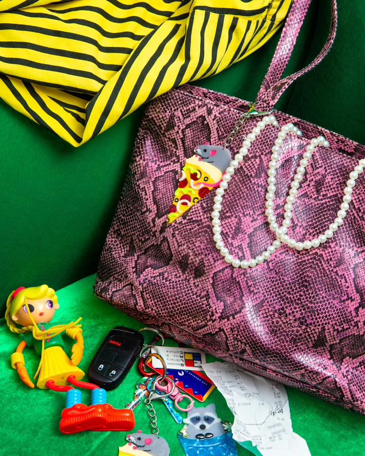 He's been holding on to this slice of pizza with all his might and is prepared to do the same for your keys.