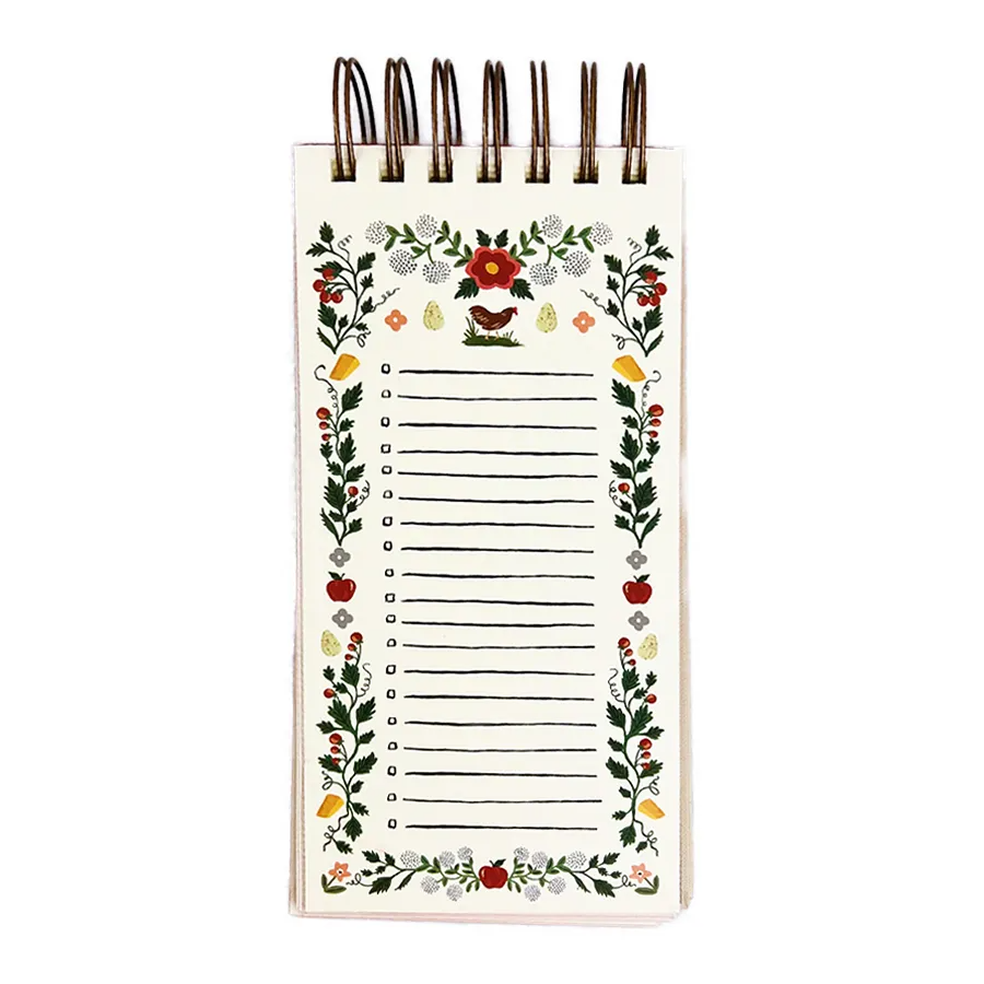 Organize your grocery list with this spiral-bound market pad, featuring 65 lined, perforated sheets and cross stitch-inspired illustrations on the cover.