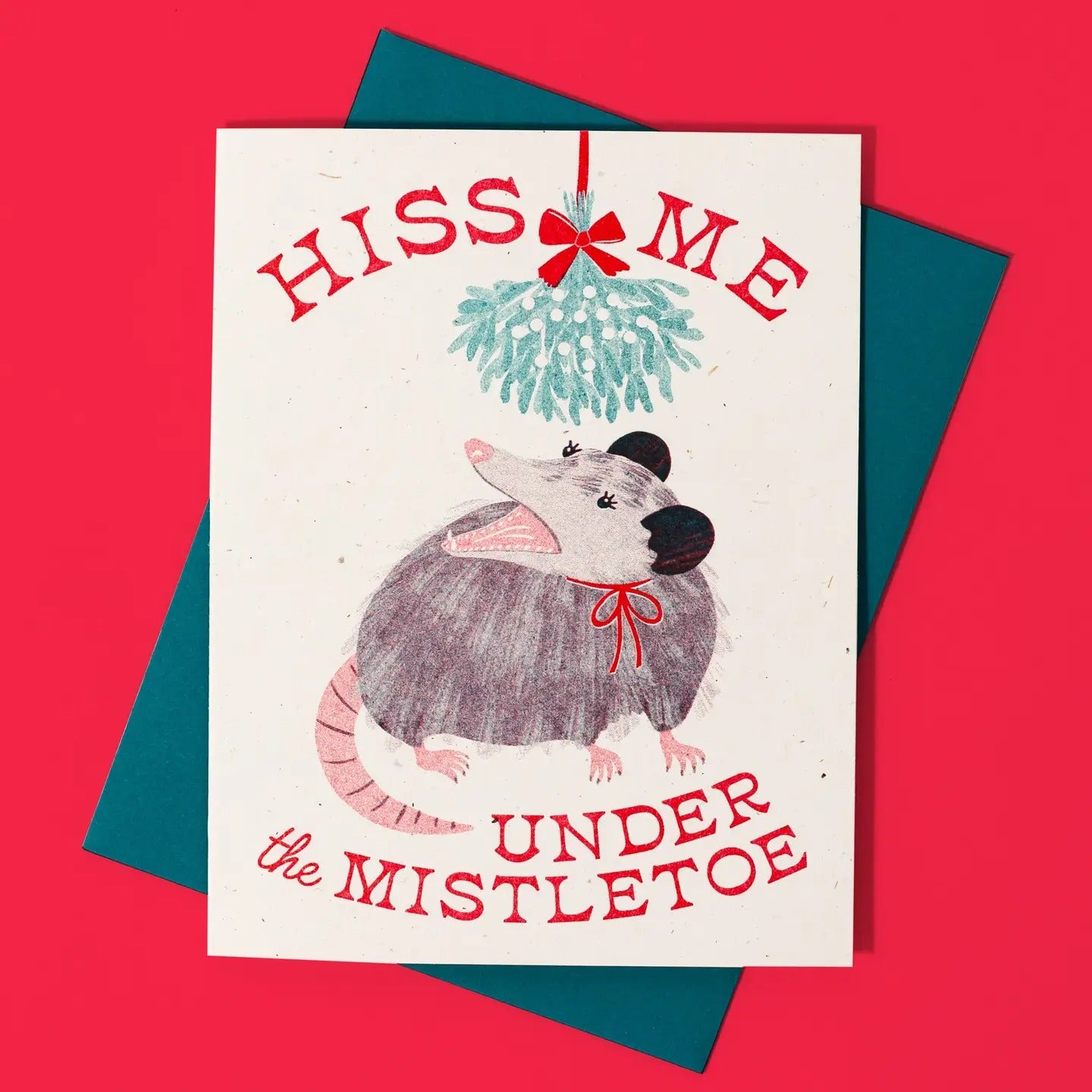 Catch this possum under the mistletoe for a little holiday hiss. For when you are feeling a little "Bah, humbug!" about Christmas but still want to be festive.