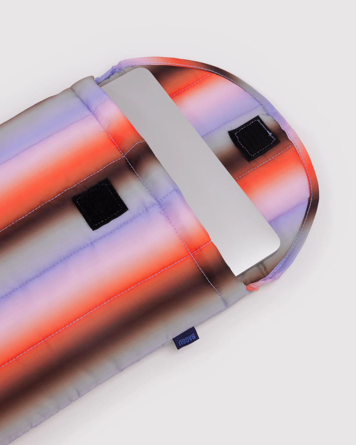 Your laptop does so much for you. Doesn’t it deserve a cozy place to live? Our puffy laptop sleeve is quilted and stuffed to provide most 14" laptops and tablets with just enough padding for comfortable rides.