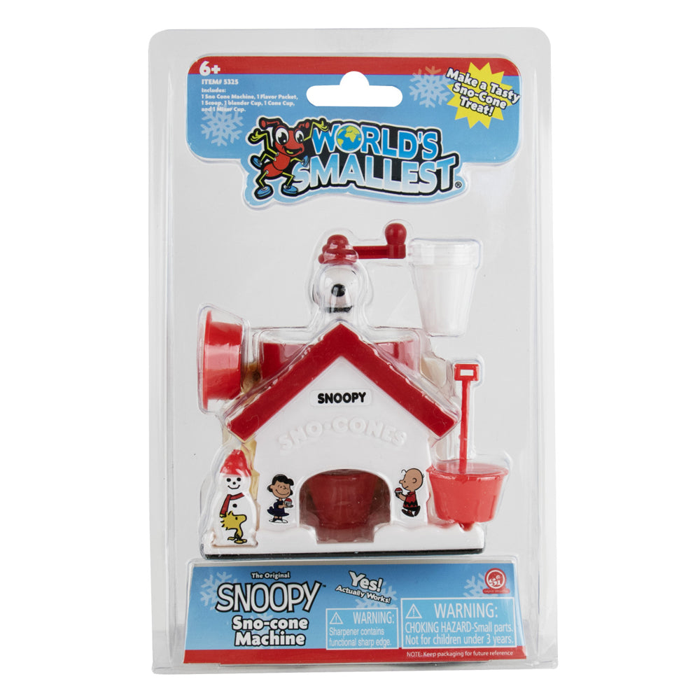 The World’s Smallest Snoopy Sno-Cone Machine brings back the beloved 1970s favorite in a collectible mini size. This functional miniature really works—just add ice and turn the crank to make real sno-cones just like the original full-sized machine.